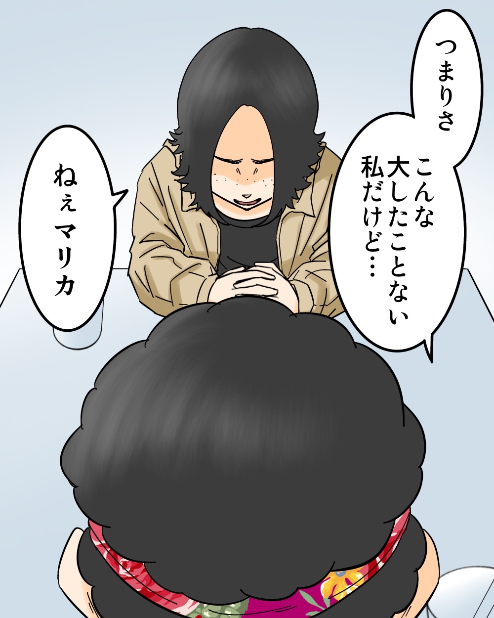 ポジティブすぎる親友が正直しんどい【4】 2025/01/08 今回はポジティブすぎる親友とうまく付き合うためには…?というお話です。最後までよろしくお願いします。前回のお話↓ 最初から読む↓ こちらもオススメ↓【家出少年がたどり着いた、住民が一人もいない不思議な街のお話…】 続きはこちら↓読者登録はこちら↓ 「ポジティブすぎる親友が正直しんどい」カテゴリの最新記事 < 前の記事次の記事 >