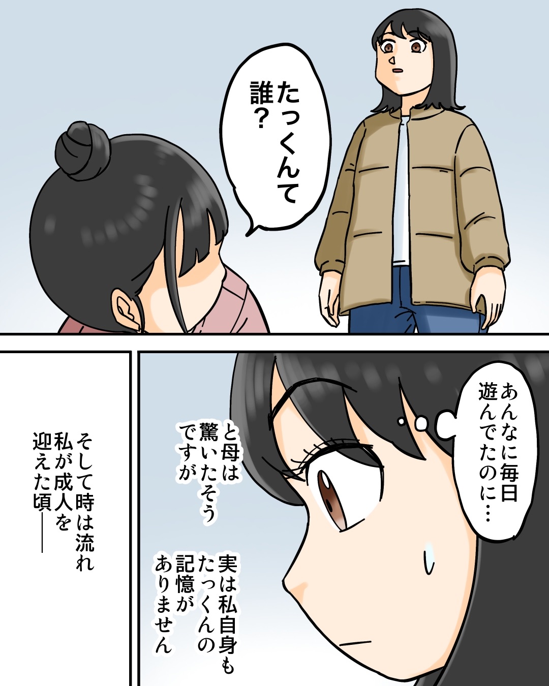 時を超える友達 2025/03/01 今回はりなさんからいただいたエピソードを漫画化させていただきました。りなさんのエピソードは以上です。 こちらもオススメ↓【気がつくと奇妙な世界にいる私…しかしその理由はまさかのアレが原因だった】本編はこちら↓読者登録はこちら↓ 「不思議な話」カテゴリの最新記事 < 前の記事次の記事 >