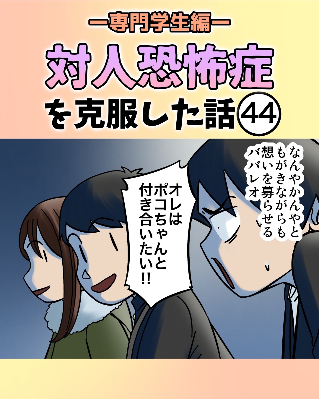この時点で対人恐怖症はかなり克服されてますが、この恋の行方を描き切りたいと思います。
