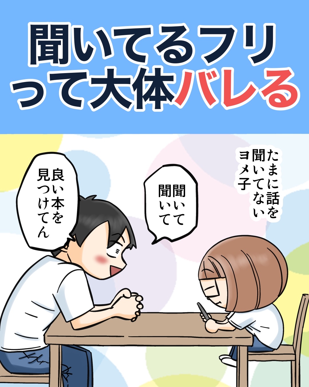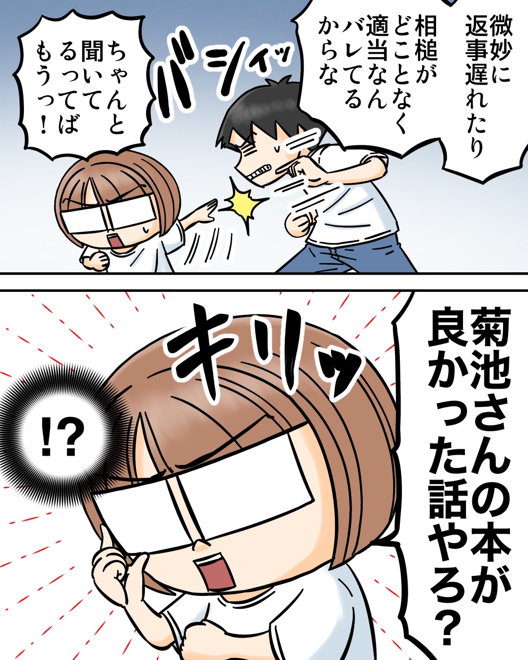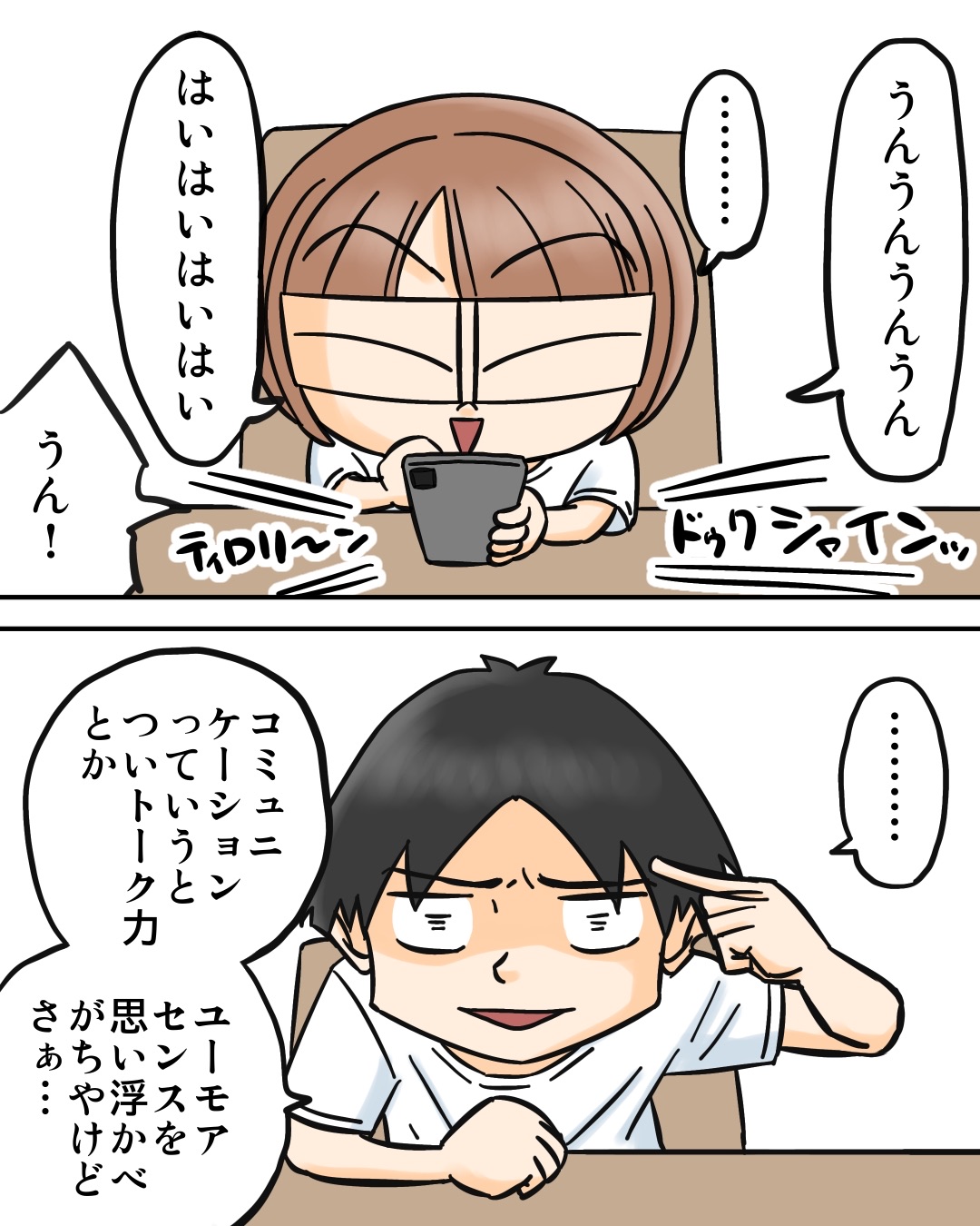 聞いてるフリって大体バレる 2025/07/09 みなさん、その聞いてるフリ、バレてないと思ってます?残念ながら大体バレてます。聞いてなかった時は素直に告白した方がいいぜ。 「ヨメ子ネタ」カテゴリの最新記事 < 前の記事次の記事 >