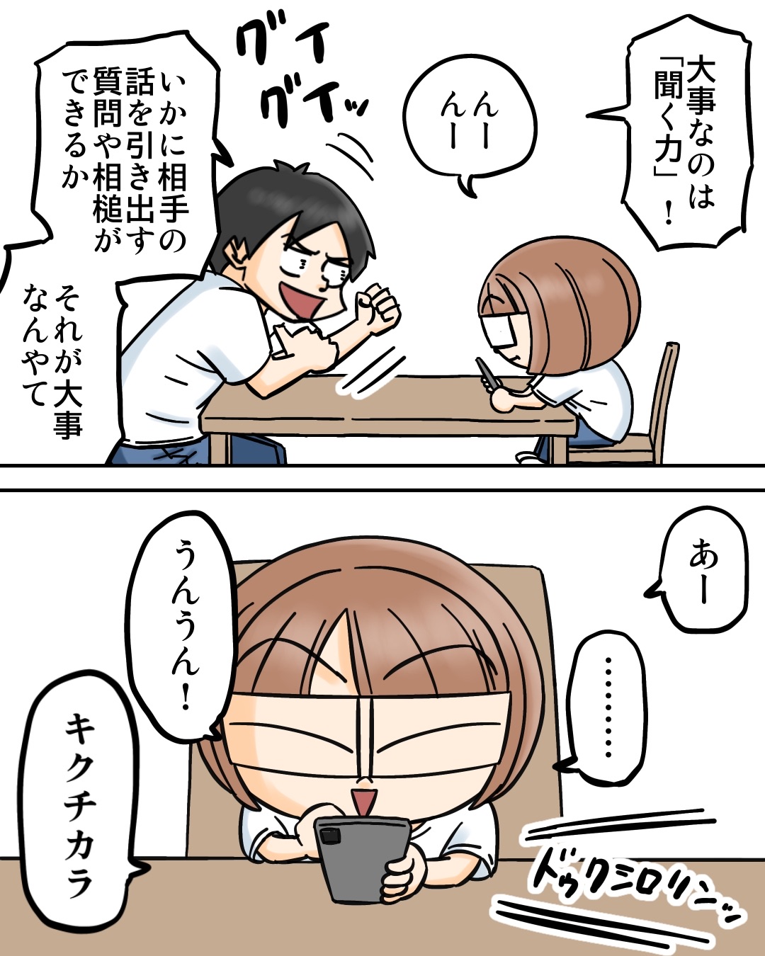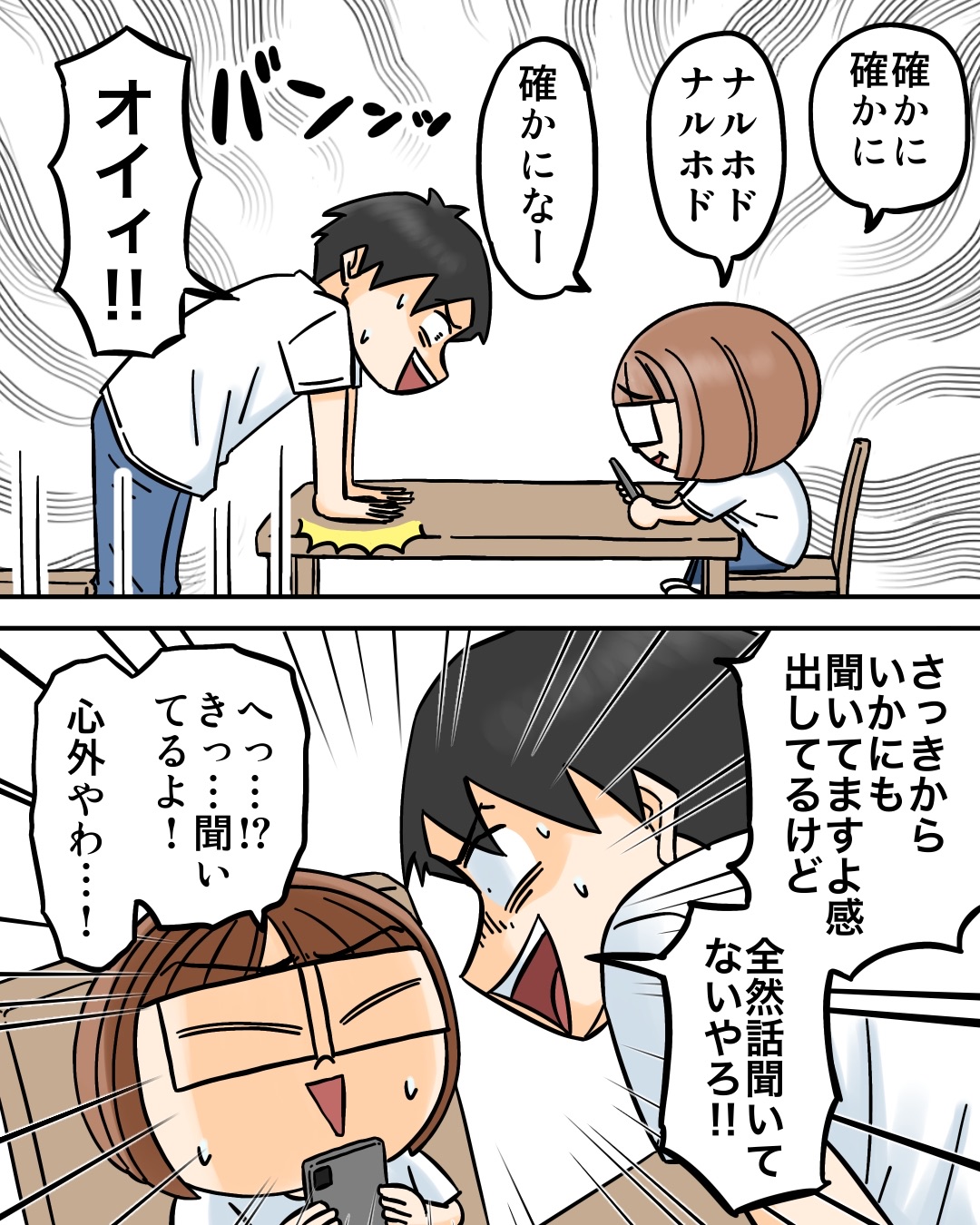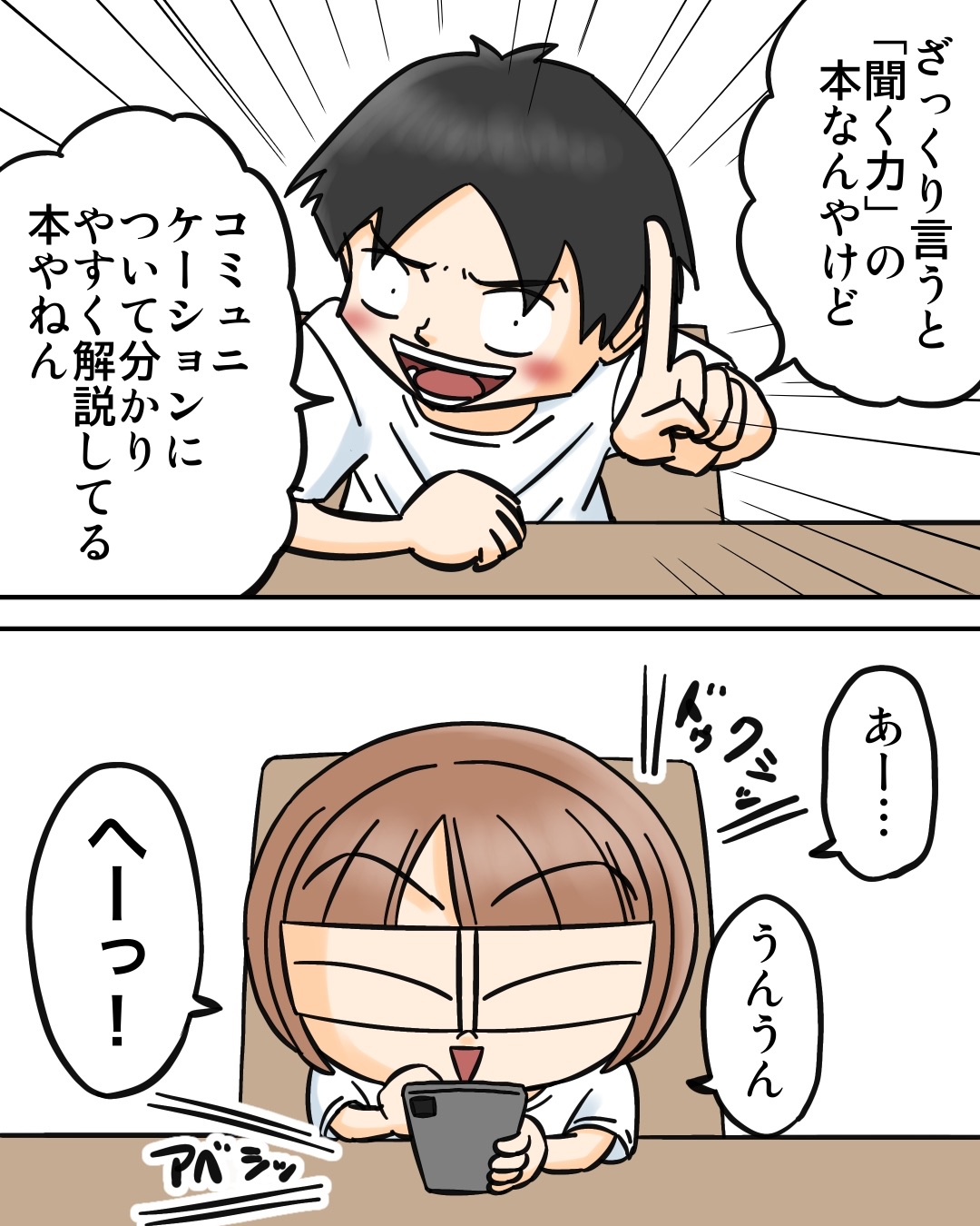 聞いてるフリって大体バレる 2025/07/09 みなさん、その聞いてるフリ、バレてないと思ってます?残念ながら大体バレてます。聞いてなかった時は素直に告白した方がいいぜ。 「ヨメ子ネタ」カテゴリの最新記事 < 前の記事次の記事 >