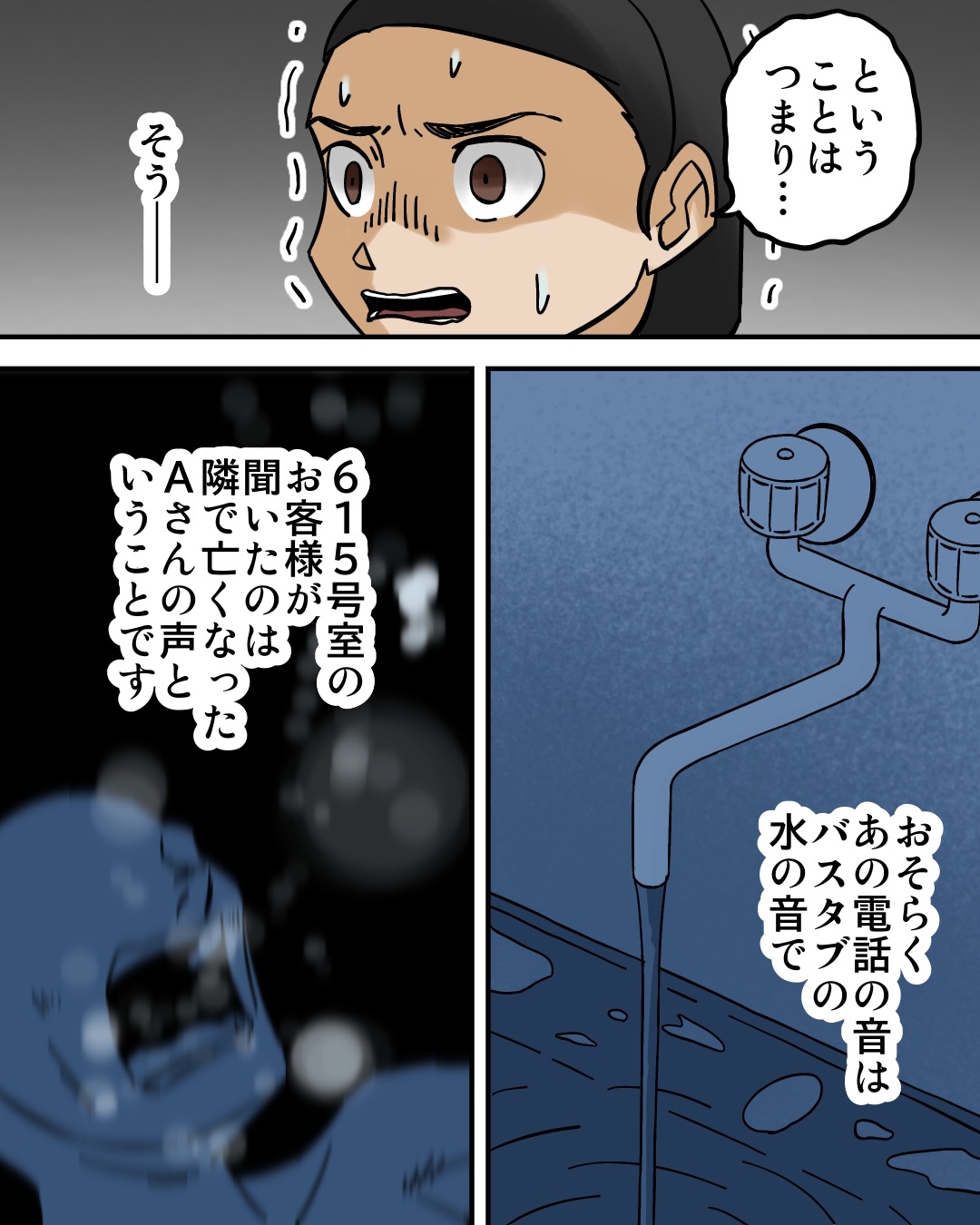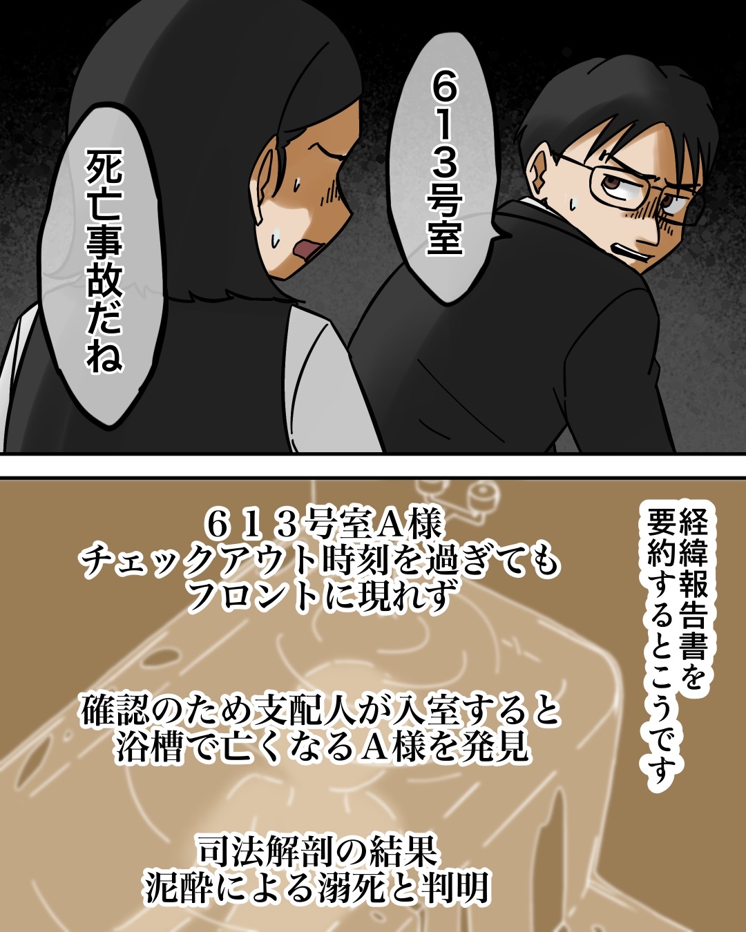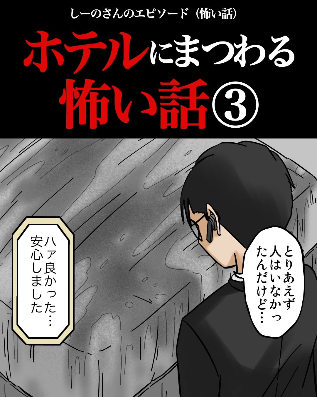 ホテルにまつわる怖い話③ 2025/10/10 今回はしーのさんのエピソードを漫画化させていただきました。全4話となりますので、最後までよろしくお願いします。続きはこちら↓ こちらもオススメ↓【家出少年がたどり着いた、住民が一人もいない不思議な街のお話…】 続きはこちら↓読者登録はこちら↓ 「ホテルにまつわる怖い話」カテゴリの最新記事 < 前の記事次の記事 >