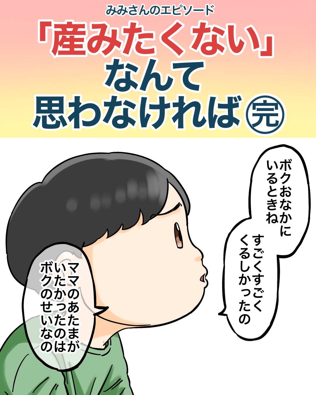 「産みたくない」なんて思わなければ【完】 2025/11/22 今回はみみさんのエピソードを漫画化させていただきました。今回が最終話です。みみさんのエピソードは以上です。 こちらもオススメ↓【突然寝室に現れた老婆の霊…この出来事をバイト先の店長に相談したことがきっかけで…?】本編はこちら↓読者登録はこちら↓ 「不思議な話」カテゴリの最新記事 < 前の記事次の記事 >