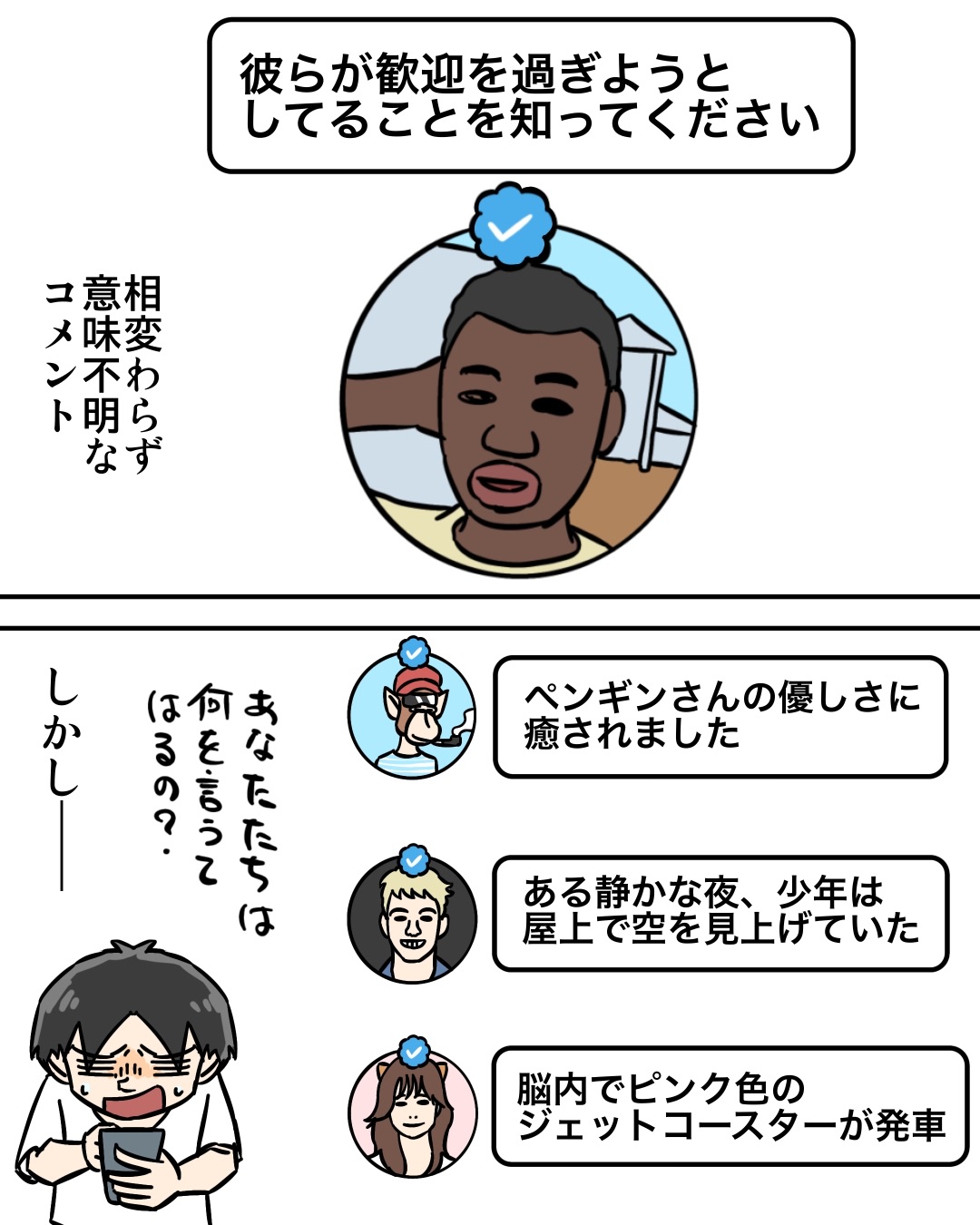 Xって怖い 2026/01/19 久々の通常漫画です。Xでボコられた話聞いてください。ボコられたネタ↓ Xではフォロワーさんの体験談しか更新してなかったのですが、最近日常漫画のアカウントも作って頑張り始めたので、応援よろしくお願いします!!
