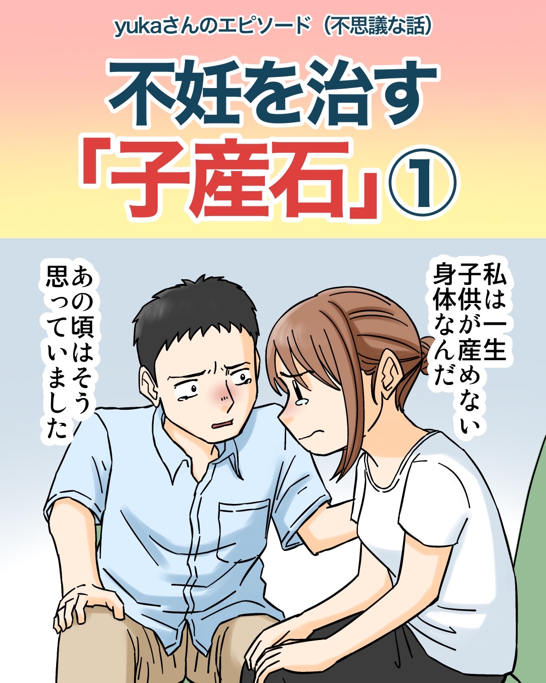 不妊を治す「子産石」① 2026/02/06 今回はyukaさんのエピソードを漫画化させていただきました。全3話ですので最後までよろしくお願いします。続きます。 こちらもオススメ↓【結ばれることなく亡くなってしまった彼がずっと見守ってくれていた話】続きはこちら↓読者登録はこちら↓ 「不思議な話」カテゴリの最新記事 < 前の記事次の記事 >