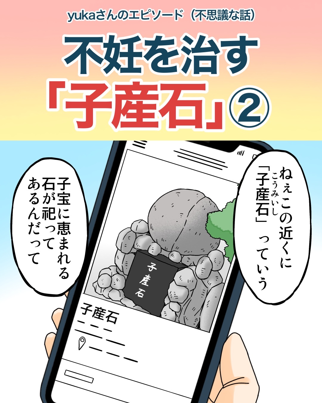 不妊を治す「子産石」② 2026/02/09 今回はyukaさんのエピソードを漫画化させていただきました。全3話ですので最後までよろしくお願いします。続きます。 こちらもオススメ↓【家出少年がたどり着いた、住民が一人もいない不思議な街のお話…】 続きはこちら↓読者登録はこちら↓ 「不思議な話」カテゴリの最新記事 < 前の記事次の記事 >