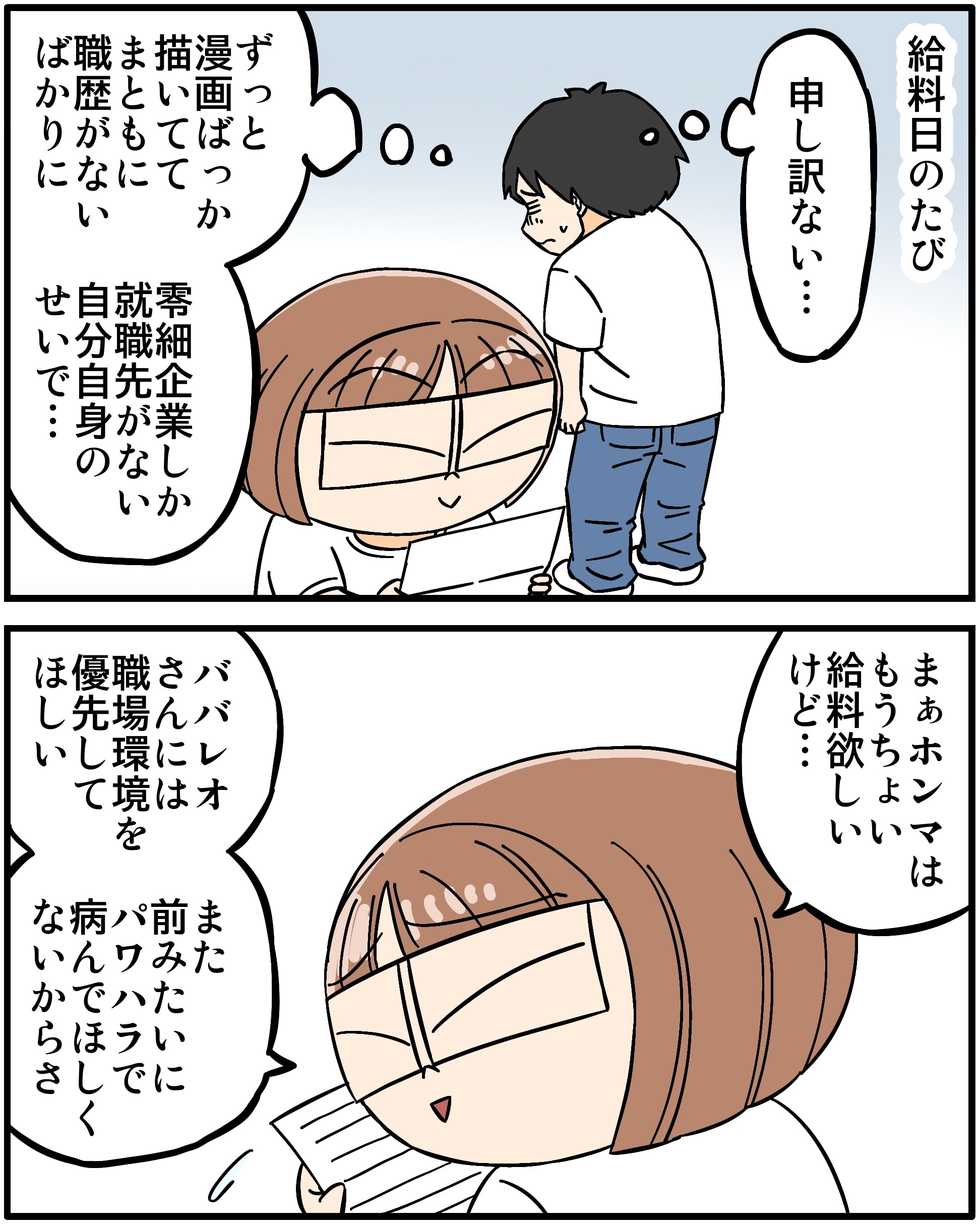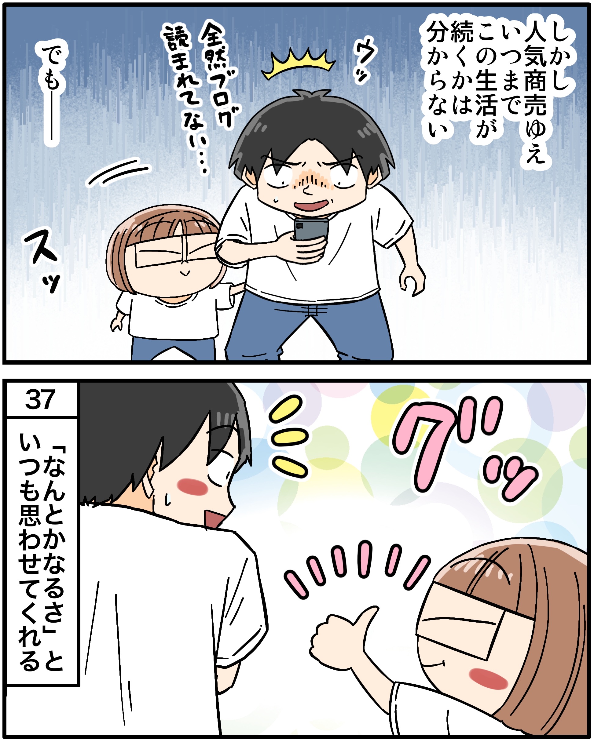 僕が妻を好きな100の理由【37】 2026/03/16 またしてもヨメ子への感謝。なんとかなるし、なんとかする! 「僕が妻を好きな100の理由」カテゴリの最新記事 < 前の記事次の記事 > コメント コメント一覧 (21) 1. ヨメコさんラブ子 2026/03/16 18:02 ヨメコさんーー!ほんとにエピソード読めば読むほど好きになります! そんなヨメコさんと寝る前に何時間もおしゃべりしたり、盛り上がれるババレオさん、最高すぎる相性の良さですよね✨ 私も仕事が辛い時、ヨメコさんに旅行に連れ出してほしいーー! 0 babareo がしました 2. ヨメ子ファン 2026/03/16 18:04 読めば読むほどヨメ子ファンになっていきます! 私の人生も一緒に歩んでほしい😂🩷 よめこさん、心の土台というか「人生何とかなる!」という感覚が深く染み付いている人なんですね。こんな素敵な人に好かれるババレオさんがどれだけ素敵な人なのか気になります。 0 babareo がしました 3. 私もヨメ子のファン 2026/03/16 18:09 この夫婦のマンガ大好きです✨ ドラマ化してほしい〜! 15分くらいのショートドラマで全12回くらいで夜中にやって欲しい笑 笑いありで。笑 0 babareo がしました 9. いいね 2026/03/16 21:36 >>3 本当にみたいな 羨ましいこの2人 0 babareo がしました 4. みやび 2026/03/16 18:24 ヨメ子さん人生何周目なん? お互いがお互いを思いやれるって 簡単にできそうでなかなかできないと思うの。 このご夫婦…ほんとに素敵すぎるよ… 0 babareo がしました 5. アイシー 2026/03/16 18:28 応援してます!大丈夫!💪 0 babareo がしました 6. ako☆★ 2026/03/16 19:46 本当にヨメ子さん達観されていて、、凄いなぁ🥺 普通ならお金無くなるー切り詰めるーってなる所を、視野を広げられる意味でも近場ではなくエジプト選択されているのも素晴らしい✨ 真似したくても真似できません😌 0 babareo がしました 7. るみ 2026/03/16 20:51 ヨメ子さん、本当に素敵😊 妻として目指したい姿です。 夫婦エピソード、楽しみにしてます😊 0 babareo がしました 8. s 2026/03/16 21:04 ❤️❤️❤️❤️❤️❤️❤️❤️❤️❤️ ❤️❤️❤️❤️❤️❤️❤️❤️❤️❤️ ❤️❤️❤️❤️❤️❤️❤️❤️❤️❤️ ❤️❤️❤️❤️❤️❤️❤️ 0 babareo がしました 10. なつみ 2026/03/16 23:01 ヨメ子さんが最高すぎて…! 見習わねばと多々思います! 素敵な奥様ですね✨ 0 babareo がしました 11. ぺい 2026/03/17 01:19 いつも楽しに拝見しております。「二人いれば何とかなる」は好きというより救われる一言ですね。我が妻は専業主婦で中々働いてくれません。私が死んだら何ともならなくなります。と思ったら保険金がおりるんでした。テヘペロ 0 babareo がしました 12. 羨ましい〜 2026/03/17 08:09 嫁子さんも素敵だけど、お二人の相乗効果あってのこと。相性がいいんだろうなって感じました! 0 babareo がしました 13. れち 2026/03/17 09:49 ババレオさん!なんとかなりますよ!! ヨメコさんという素敵な奥さんがそばに居て、きっとこれかもずっと!! 私はお二人を応援しています^_^ 0 babareo がしました 14. 杏 2026/03/17 11:27 全力で、拍手ボタンを連打しました☺️ ヨメ子さん、最高です。 0 babareo がしました 15. モカ 2026/03/17 11:32 いつも読んでるんだけど毎日。 どうやったら見てるよってなるかわからないの。 拍手?もわからない😭 ごめん 0 babareo がしました 16. モカ 2026/03/17 11:32 いつも読んでるんだけど毎日。 どうやったら見てるよってなるかわからないの。 拍手?もわからない ごめん 0 babareo がしました 17. モカ 2026/03/17 11:34 拍手ってどうやるの? 毎日読んでて大好きなのに嫁子ちゃん♡ 0 babareo がしました 18. 名も無き雑学者 2026/03/17 12:08 ババレオさんのマンガ 好きやで 0 babareo がしました 19. KKK 2026/03/17 12:13 私は仕事環境が恵まれていると感じます ただ数年目に色々なトラブルで 心が少し疲れた時期がありました その時の 話が 今回ババレオさんと嫁子さんの お話と瓜二つだったので コメントを書かずには いれませんでした 嫁子ありがとう 0 babareo がしました 20. 名無し 2026/03/17 13:24 良い嫁だ 羨ましい😂 0 babareo がしました 21. ⠀ ⠀ ⠀ 2026/03/18 07:19 このシリーズはNHKでショートアニメ化しても良いくらい素晴らしいエピソードばかりです。サザエさんの後番組にしても良いくらいですね。 0 babareo がしました コメントフォーム 名前 コメント 記事の評価 リセット リセット 顔 星 情報を記憶 コメントを投稿する
