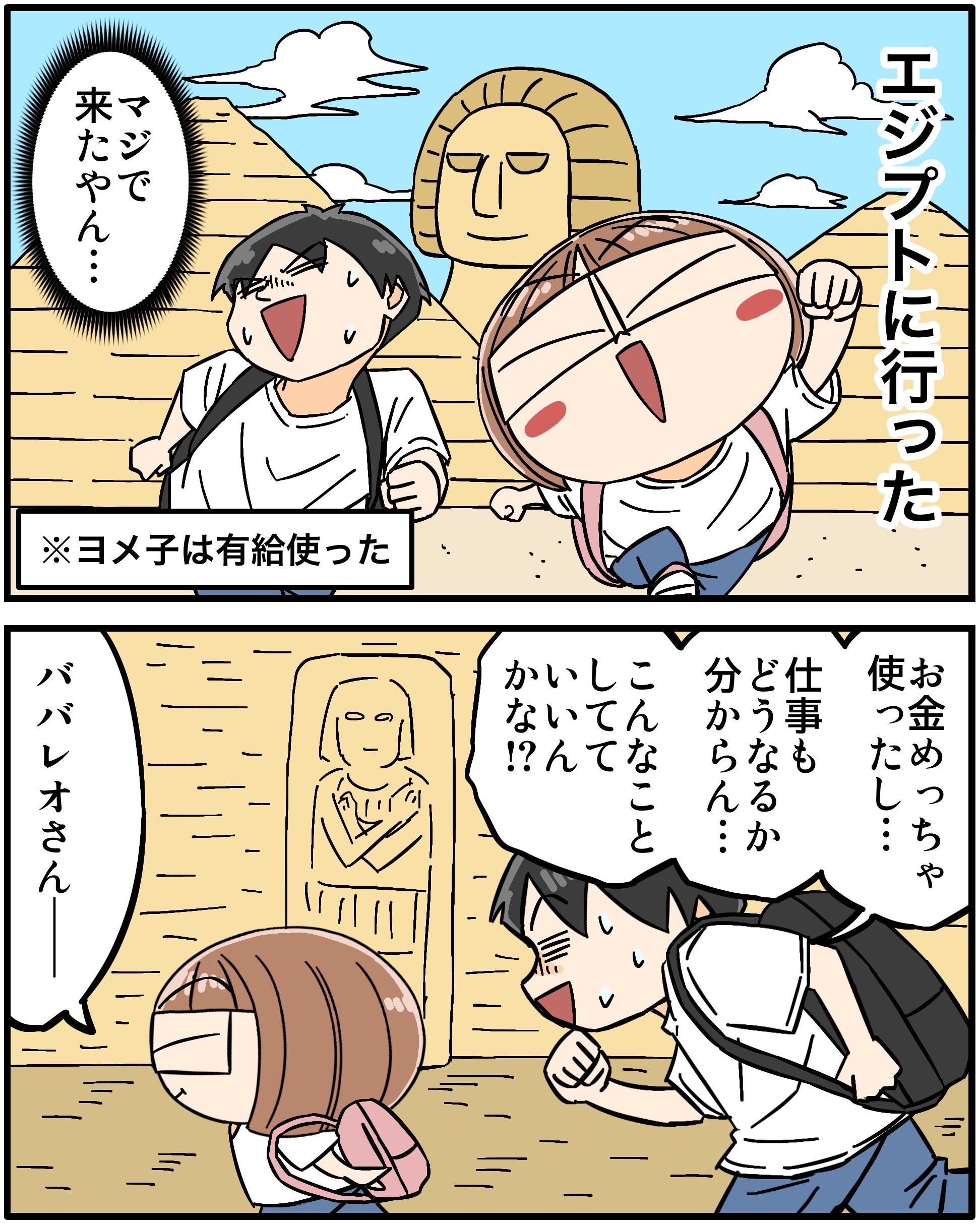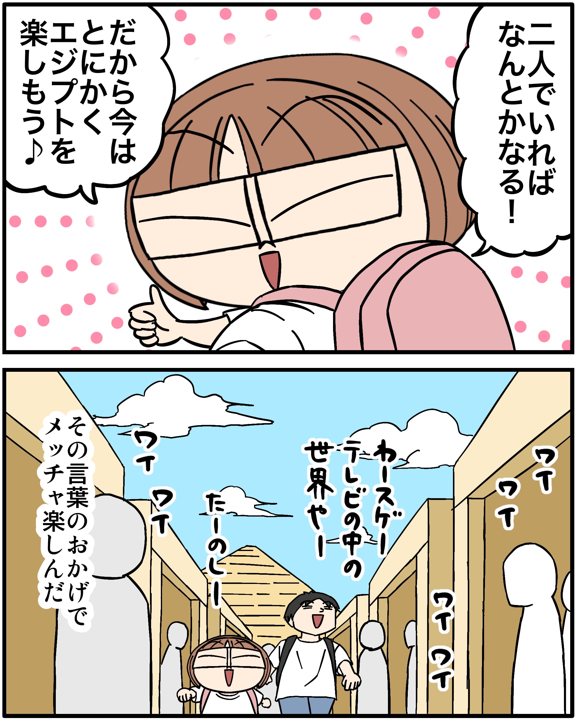 普通ならお金無くなるー切り詰めるーってなる所を、視野を広げられる意味でも近場ではなくエジプト選択されているのも素晴らしい✨
