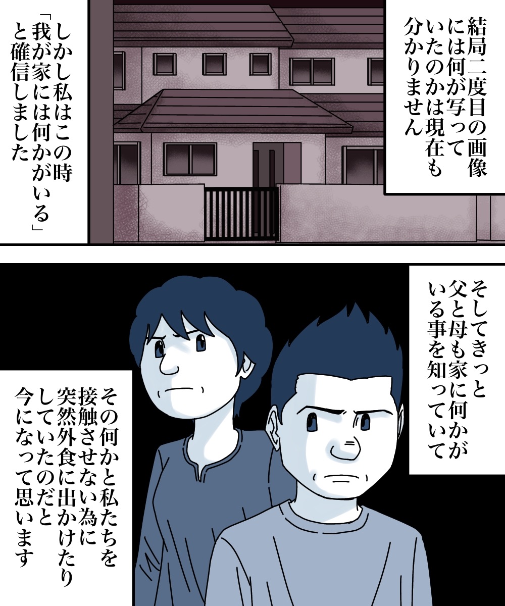 鏡が割れたその日から不思議なことが起きました7 2021/01/13 このお話は、マコトさんから頂いた恐怖体験を漫画化しております前回までのお話はこちら↓ 最初から読みたい方はこちら↓続きはこちら↓ 続きが気になるよーという方は、よろしければ読者登録お願いします。更新通知を受け取って、いち早く漫画が読めます↓ 「鏡が割れたその日から不思議なことが起きました」カテゴリの最新記事 < 前の記事次の記事 > コメント コメント一覧 (5) 1. あ 2021/01/13 08:41 真っ白では無いけど… イルミネーション見に行って、シンデレラのイルミネーション写真に撮ったら首から上だけが写ってない事ならあった🤭 周りも身体もしっかり光って写ってるのに頭だけ映ってないから不自然で怖くて消しました😂 0 babareo がしました 2. ババレオ 2021/01/13 10:03 >>1 えっ怖すぎません?😨 0 babareo がしました 3. もももも 2021/01/13 15:57 あーー、続き気になる😨😨 0 babareo がしました 4. あお 2021/01/13 23:25 高校卒業の日に、最後にみんなと教室で撮った写真の中に友達のお父さんの顔がはっきりと写り込んでいた。 卒業式から3日後にそのお父さんはお亡くなりになりました。 で、月日が流れてそのことをすっかり忘れてて、30年後の最近にアルバムの写真を見てたら、お父さんの顔は消えてました。 当時も今も恐怖とかはなかったけど、お父さんは友達のことが心配だったんだろうなと思う。 勝手な解釈で真意はわからないけど、子供想いの良いお父さんだ。今自分も娘の父親だが、まぁ自分が死んでも娘の写真には写り込まないだろうな。 今はネット時代で拡散されたら嫌だしさ。 0 babareo がしました 5. 通りすがり 2023/01/11 09:28 軽い気持ちで見始めたら何話あるんだこれ… 0 babareo がしました コメントフォーム 名前 コメント 記事の評価 リセット リセット 顔 星 情報を記憶 コメントを投稿する