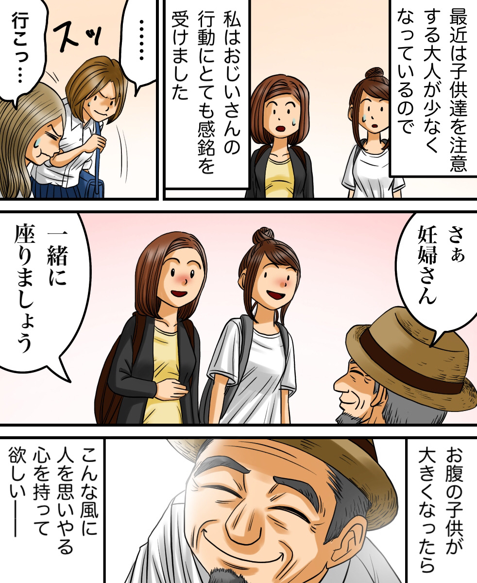 電車の中で起きたスッキリする話 2021/02/20 このお話は、ミキさんからいただいたお話を漫画化しております。ミキさんからのお話は以上になります。 「ちょっと良い話」カテゴリの最新記事 < 前の記事次の記事 > コメント コメント一覧 (7) 1. あ 2021/02/20 23:24 おじいさん素敵です 0 babareo がしました 2. ななななし 2021/02/21 22:58 スカッとなんとかってテレビで見た事ある! 投稿者さん同じ人かな? 0 babareo がしました 3. ほうじ茶 2021/02/22 20:33 スカッとジャパンでみた! 0 babareo がしました 4. ゆ 2021/02/24 13:36 カッコいいおじい様( 〃▽〃)! 私もこんなスマート言えるような方になりたい! 0 babareo がしました 5. 蘭 2021/04/09 10:04 頭ごなしに言われるよりものの言い方1つで人を動かすってすごいと思う‼️ 0 babareo がしました 6. おじいさん 2021/05/23 05:00 女子高生に痴漢扱いされて冤罪逮捕。 怖い世の中 0 babareo がしました 7. moka 2021/09/20 08:57 毎日、楽しく拝見しています。 良いお話も怖いお話も、いつも可愛らしいイラストで読みやすくとても面白いです。 私の体験談も今度投稿させていただきますね! 0 babareo がしました コメントフォーム 名前 コメント 記事の評価 リセット リセット 顔 星 情報を記憶 コメントを投稿する