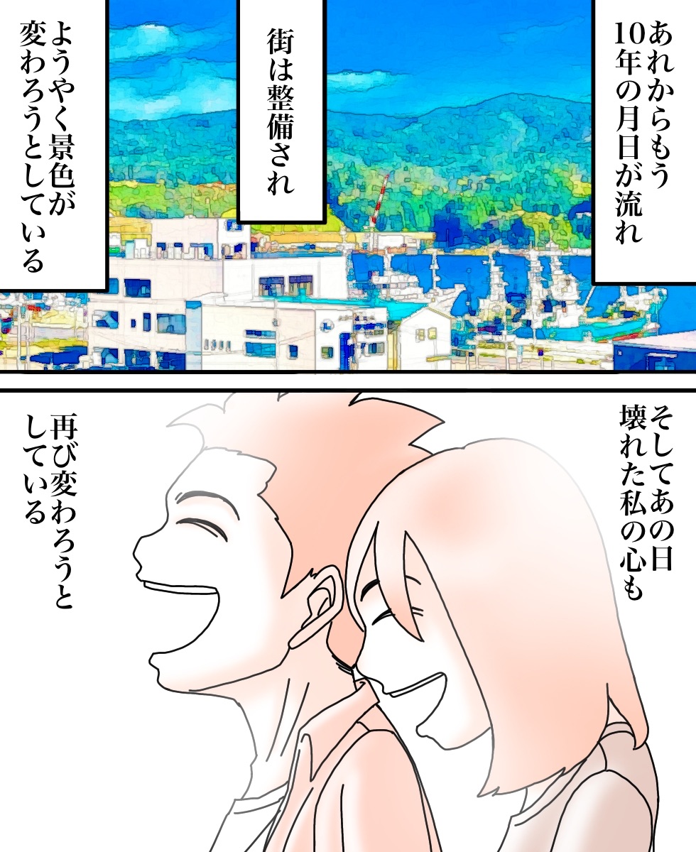 震災当時のニュース、震災から10年経ってから流れる震災当時の映像などを見て心が痛み涙が溢れます。未だに被災してる方々や、辛い思いをしている方も沢山居るとは思いますが、あかりさんのように前へ一歩進み始められた方も確かにいると思うと、少しばかり心が救われます。