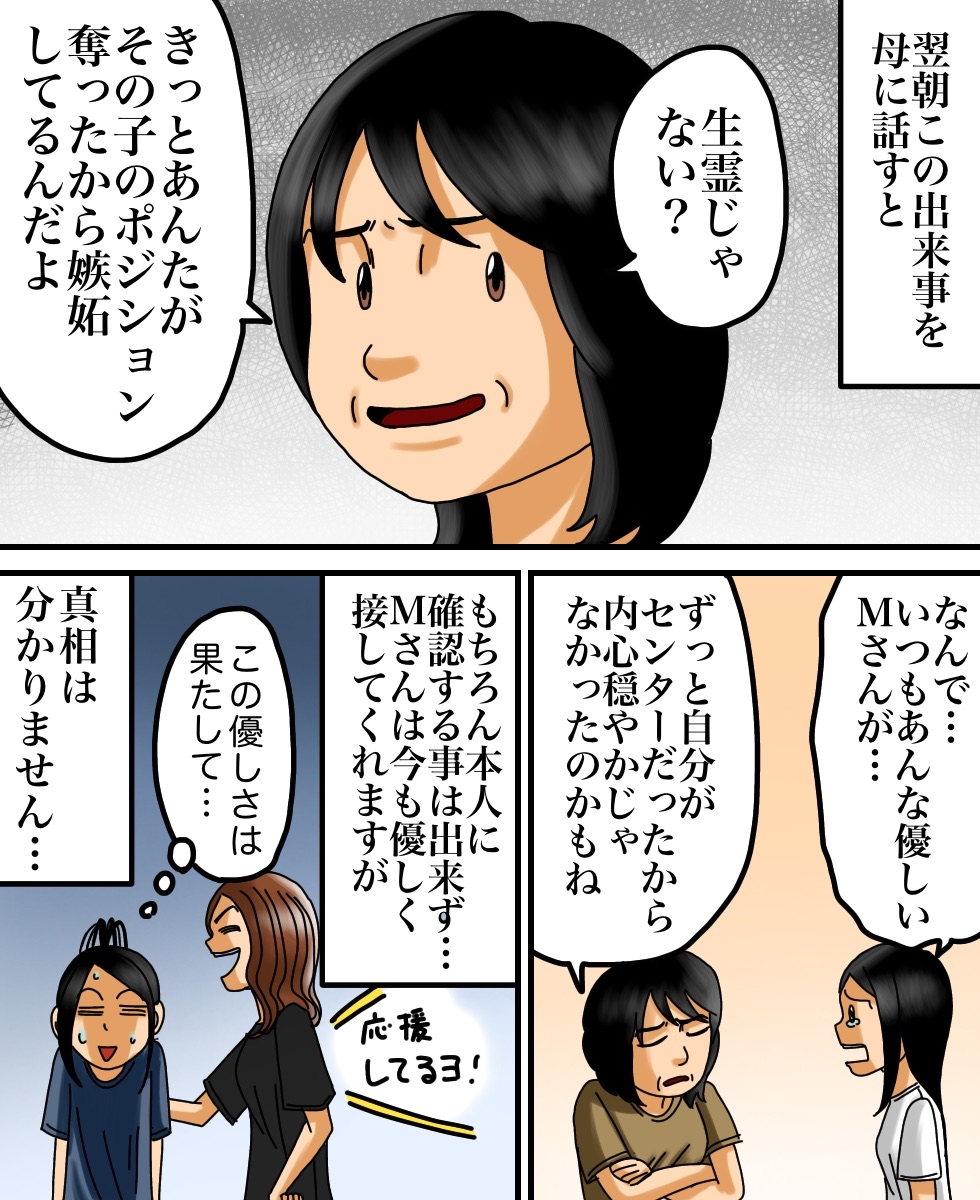 生き霊飛ばされると怖いけど、悔しい気持ちがあるのに、優しく出来るMさんって凄いとも思います。