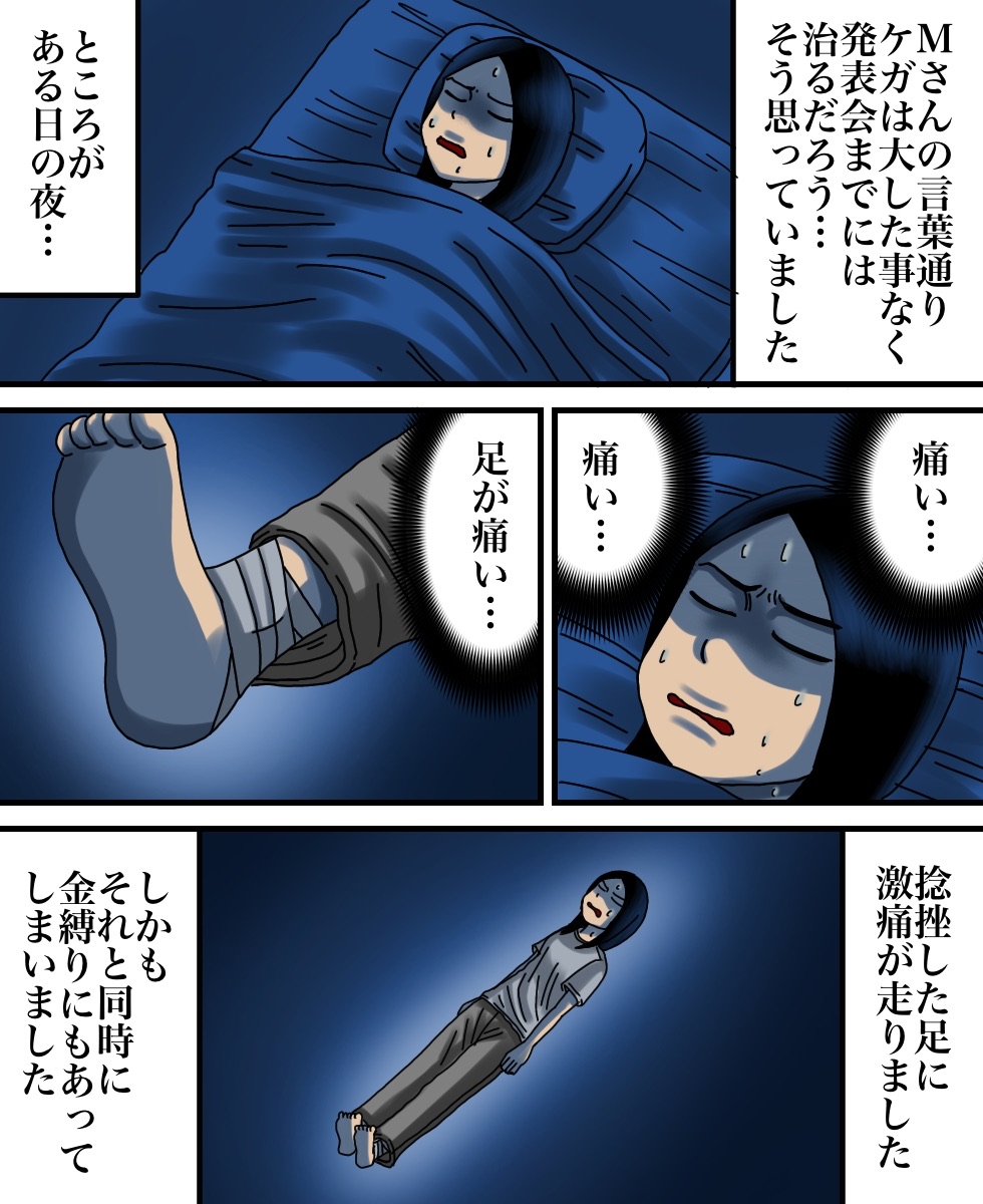 私の見た生霊 2021/03/28 このお話は、ミオさんからいただいたお話を漫画化しております。ミオさんからのお話は以上です。こちらもオススメ↓自衛隊の上司が見せた勇気ある行動とは… 仲の悪かった親子が結婚式で再会…早く先読みしたい!という方は下のおばちゃんの画像をクリックして読者登録お願いします。更新通知を受け取って、いち早く漫画が読めます↓ 「怖い話」カテゴリの最新記事 < 前の記事次の記事 > コメント コメント一覧 (11) 1. こだぬき 2021/03/28 10:14 きっと、その後の優しいMさんも本当のMさんなんじゃないかな? よく(?)生き霊飛ばしてる人は生き霊を飛ばしてる事に気付かないって聞くし、Mさんはずっと努力してセンターだったから、それを取られて悔しい気持ちがないわけない、そんな悔しさはあってもミオさんを妬んでいる自覚すらないかも? 自分では気付かないくらい心の底の片隅には嫉妬心があったってことかも? と私は思いました。 生き霊飛ばされると怖いけど、悔しい気持ちがあるのに、優しく出来るMさんって凄いとも思います。 でも、たしかに自分がミオさんだったら、「怖い」が先に来ちゃうかな? 部外者(ただの読者)目線で思う気持ちと、Mさん目線、ミオさん目線、それぞれ変えると思う事とか変わってくるので難しいなぁ(>_<) 0 babareo がしました 2. ババレオ 2021/03/28 10:34 >>1 深い考察! そう考えるとただの怖い話ではなくていろんな見方ができますね。 なるほど〜と思いました。 0 babareo がしました 3. との 2021/03/28 14:13 完全に言いがかりで草。 0 babareo がしました 4. な 2021/03/28 14:54 Mさん(の生霊)が捻挫を治してくれたのかと思ったら普通にバッドエンドでした… 0 babareo がしました 5. ゆっこ 2021/03/28 21:49 最後のMさんの顔でゾッとした... 誰か一緒にトイレいこーよー。゚(゚´Д`゚)゚。 0 babareo がしました 6. 2021/03/29 20:33 自分がMさんからセンターのポジション取った!って思ってるから夢見たんじゃないの?まじで言いがかりで苦笑い… 0 babareo がしました 7. アルゼンチン産はちみつ 2021/03/30 06:59 Mさんに失礼だなぁと思った。 自分の中の自信の無さから出た妄想かも知れないのに… 勝手に生霊判定して嫉妬してるって思うのはなんだかな 0 babareo がしました 8. 。 2021/03/30 12:26 ひどい仕打ちって何をされたかと思ったら、足を押さえた霊がMさんって確信があるわけでもないのに失礼だね。 0 babareo がしました 10. 2021/04/03 11:07 勝手な被害妄想で恩を仇で返される Mさん可哀想w 0 babareo がしました 11. z 2022/02/19 20:36 光り輝くものほど陰もまた濃いと言うからな。真相は自分が先輩になった時に判るのでは。 0 babareo がしました 12. レモン 2023/09/04 19:56 wow!🫨 怖〜い。 0 babareo がしました コメントフォーム 名前 コメント 記事の評価 リセット リセット 顔 星 情報を記憶 コメントを投稿する