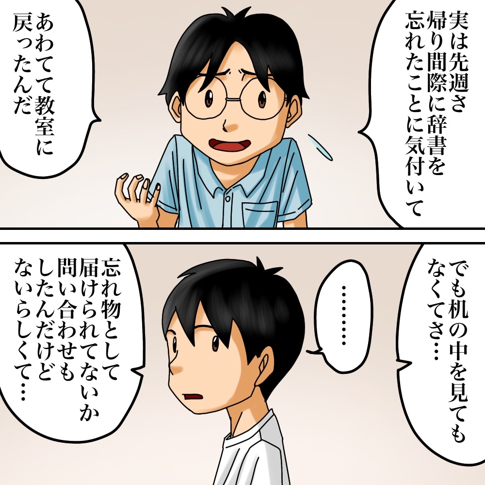 その辞書は誰のもの?【2】 2021/05/29 今回はきょうやさんからいただいたお話を漫画化しております。このお話はラジオ番組【伊集院光 深夜の馬鹿力】でも採用されたことがあるという不思議なお話です(きょうやさんご本人です)。前回のお話↓ 最終回はこちら↓こちらもオススメ↓【人コワ】一人旅に出た先で身の危険を感じたお話【いい話】亡くなった弟が時を経て我が家に…早く先読みしたい!という方は下のおばちゃんの画像をクリックして読者登録お願いします。更新通知を受け取って、いち早く漫画が読めます↓ 「その辞書は誰のもの?」カテゴリの最新記事 < 前の記事次の記事 > コメント コメントフォーム 名前 コメント 記事の評価 リセット リセット 顔 星 情報を記憶 コメントを投稿する