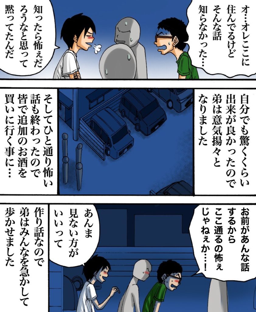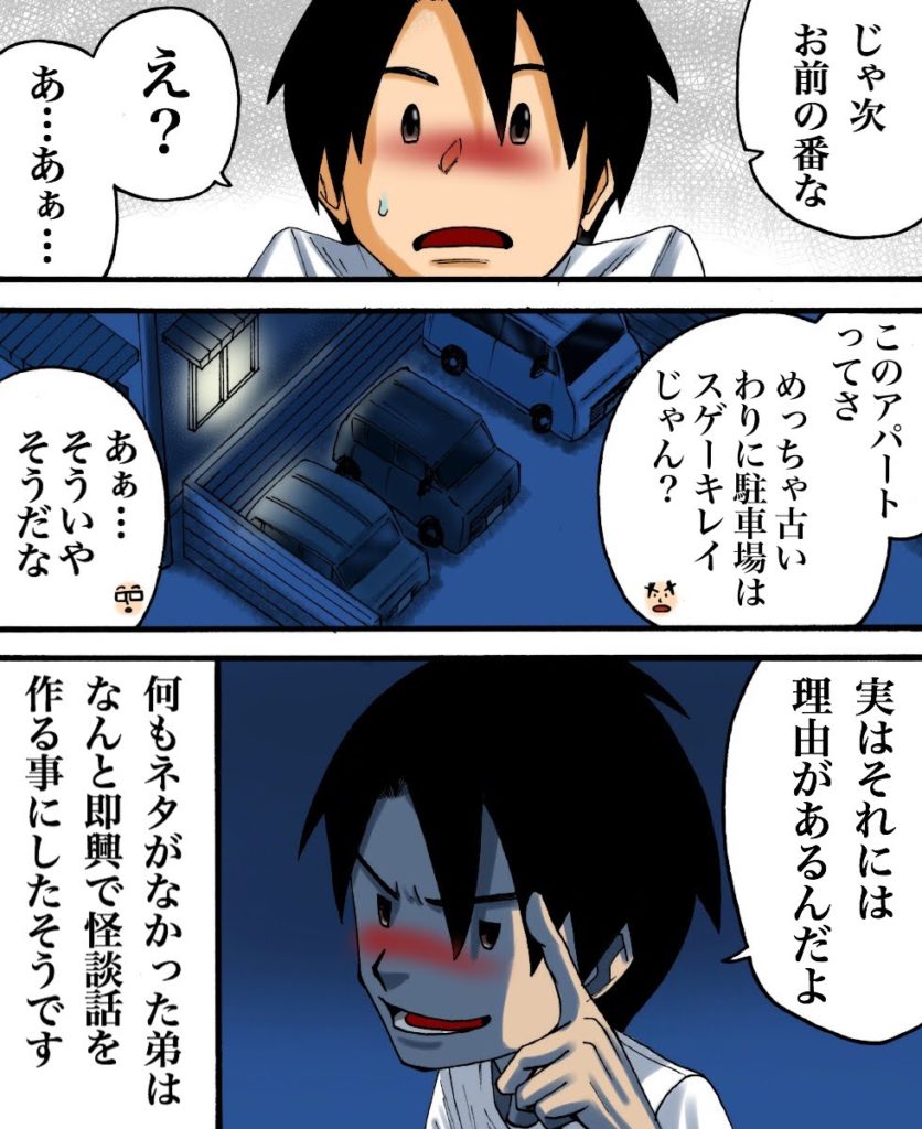 駐車場 2020/08/27 RRRさんからの投稿 このお話は、RRRさんの弟さんの恐ろしい体験談です。 RRRさんからのお話は以上になります。 「駐車場」カテゴリの最新記事 < 前の記事次の記事 > コメント コメント一覧 (11) 1. 2020/08/27 20:38 これに似た話前ゾッとする話で見た! 0 babareo がしました 2. 2020/08/27 20:59 これは有名な2chの怖い話ですね! 0 babareo がしました 3. babareo 2020/08/27 21:02 今調べて僕も見ました! 確かにちょっと似てますね・・・ちょっと違うけど・・・ 0 babareo がしました 4. babareo 2020/08/27 21:29 そうなんですか? 弟さんの話が有名になった・・・のかな? 0 babareo がしました 5. かな 2020/08/27 21:35 住宅街の夜道を歩きながら読んでいたので、かなりゾワッとしました(((;°Д°;))))(笑) 0 babareo がしました 6. babareo 2020/08/27 21:36 女性の作画気合入れました!笑 0 babareo がしました 7. 匿名 2020/08/27 21:41 この話有名! 0 babareo がしました 8. izu 2020/08/27 23:52 うん、この話は私も違うので聞いたことあります。ゾッとする話って仰った方、、テレビでやったことありますよね! 0 babareo がしました 9. 傘 2020/08/29 11:38 いやいやゾッとする話パクってるだけですやん。 0 babareo がしました 10. さかな 2020/08/29 12:42 いやいやゾッとする話と一緒ですやん。 0 babareo がしました 11. 漫画たのしい! 2022/08/23 23:24 怖すぎ、、、 0 babareo がしました コメントフォーム 名前 コメント 記事の評価 リセット リセット 顔 星 情報を記憶 コメントを投稿する